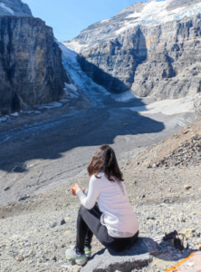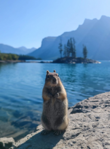 Nuestro segundo día en el parque fue supercompleto iniciando ruta desde bien tempranito. Lake Louise no es solo un lago de glaciar, es todo un complejo turístico que cuenta con un grandioso hotel de 5 estrellas, varios restaurantes, spas, restaurantes, otros alojamientos más modestos, tiendas, etc… (En las FAQ’s te cuento como llegar hasta allí.) La ruta se inicia desde el majestuoso hotel, rodeando el lago por su lado derecho. Las vistas del lago desde la orilla por la mañana son preciosas, ya que mientras no le da el sol, es como un espejo, así que podrás tener una vista del glaciar Victoria reflejado en el lago. Dejando el lago ya a las espaldas, la ruta continúa cruzando un frondoso bosque, y tras él, se inicia un camino algo más empinado que te llevará a la conocida llanura de los 6 glaciares, desde donde se pueden observar varios glaciares, el valle y algunos lagos. Tras llegar a este punto y tomarnos un descanso para desayunar y repostar fuerzas, la ruta continuó ascendiendo hasta el precioso mirador de Big Beehive. Se trata del punto más elevado de la ruta, desde donde podrás observar el brillante color esmeralda del lago en su máxima belleza. Es un mirador lleno de ardillitas curiosas que se acercaran a tu comida y jugar contigo.