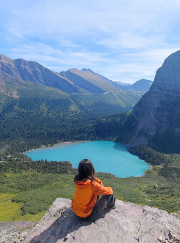 Esta fue la última ruta que realizamos en este parque nacional. El recorrido es precioso hasta llegar al lago. En nuestro caso que fuimos en verano, no vimos los famosos icebergs que se supone que se ven en este lago por el deshielo del glaciar como sí que pudimos en Grinner Glacier, pero la excursión nos encantó. La ruta discurre en medio de preciosas montañas llenas de frondosos bosques de abetos, lo que te ofrece unos paisajes de ensueño, muy recomendable. Se trata de una ruta de ida y vuelta por el mismo sendero, de unos 300 metros de desnivel y cerca de los 18 km. No hay mejor manera que invertirlo en una excursión como esta. Además, si te gusta la aventura, es una ruta donde se suelen avistar osos pardos. Nosotros no tuvimos tanta suerte, pero dos días atrás vieron a varios de ellos en el camino, por eso es que te recomiendo que siempre leves contigo el spray de pimienta a modo preventivo. Como siempre, te dejo el enlace de la ruta. El inicio de la excursión ofrece un parking gratuito donde podrás estacionar tu vehículo. Ruta a Iceberg Lake